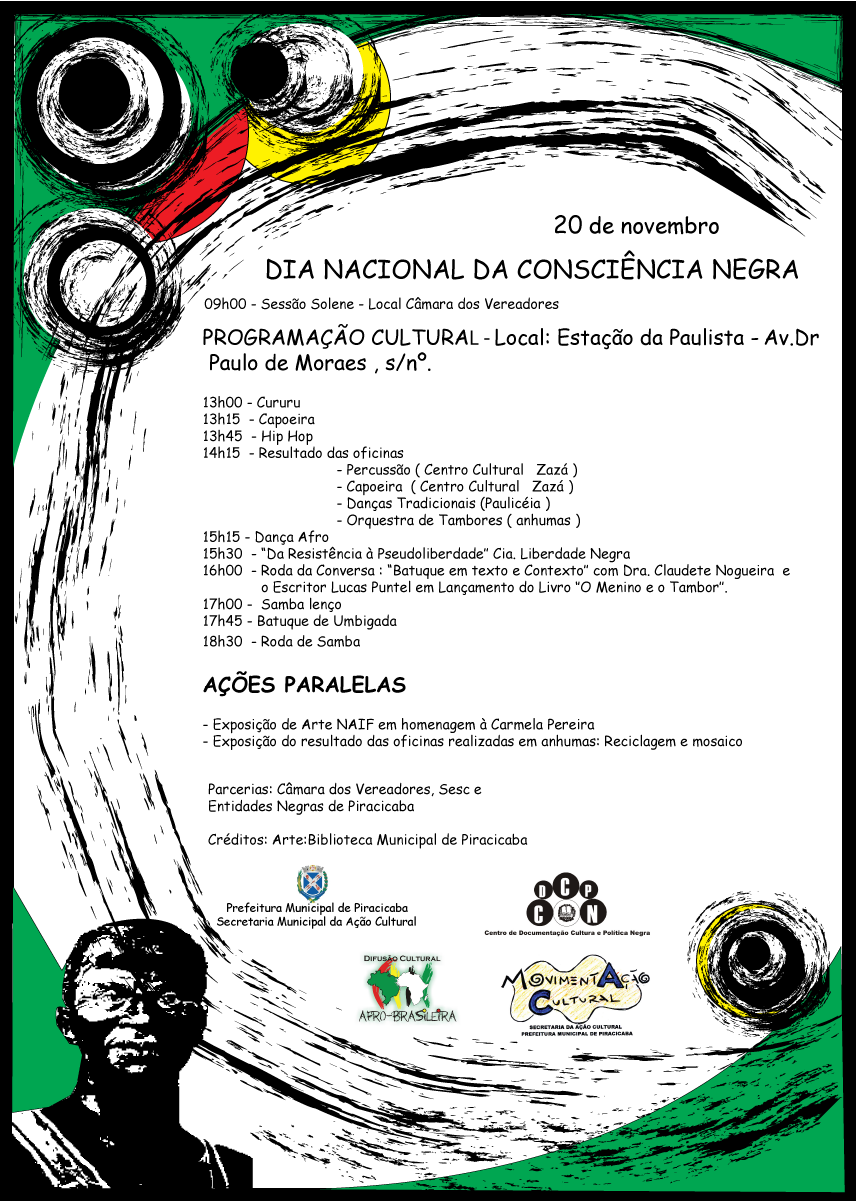 No dia 20 de novembro – Dia da Consciência Negra – a Prefeitura Municipal de Piracicaba, a Secretaria Municipal da Ação Cultural, a Difusão Cultural Afro Brasileira o o Centro de Documentação, a Movimentação Cultural, através do Centro Municipal de Cultura e Política Negra realizam atividades na Estação da Paulista.