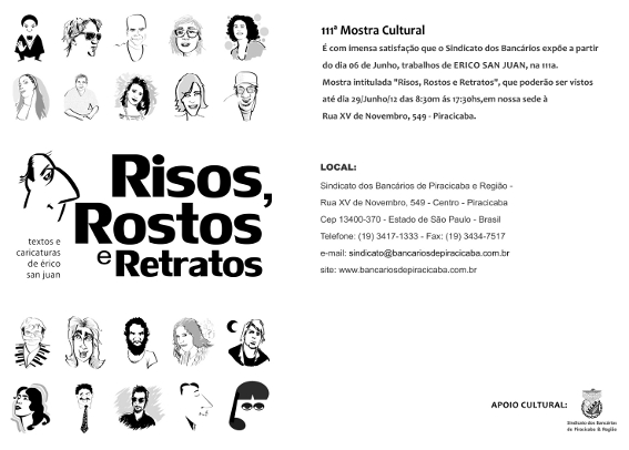 A mostra “Risos, Rostos e Retratos” tem texto de apresentação da