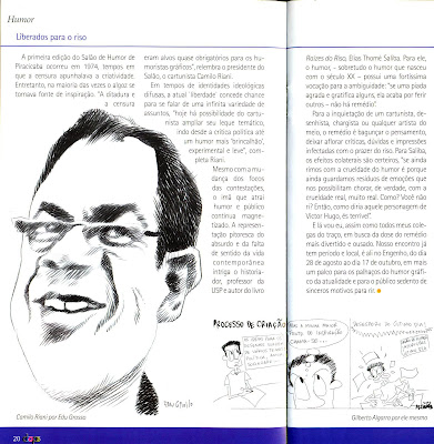 A edição nº 33, de julho de 2010 da Revista Drops – revista de entretenimento, notícias e atualidades – publicou uma matéria sobre o Salão de Humor de Piracicaba. Ilustrando a matéria, Eduardo Grosso (Diretor do Salão de Piracicaba) e Camilo Riani (artista gráfico e produtor cultural) foram convidados para fazerem a caricatura um do outro, e Gilberto Algarra (jornalista e cartunista), finalizou com uma tira contando funcionamento de seu processo de criação.