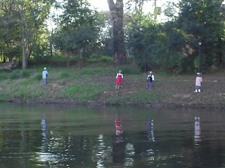 Pensei em desistir… De repente os caras poderiam estar fumando um cigarrinho especial feito com as legítimas palhas das famosas pamonhas de Piracicaba e eu ali cortando o barato deles. mas visualizei um pouco mais à frente uma senhora e umas crianças. Aí pensei: Esses caras não fumariam esse tipo de cigarro perto da senhora e das crianças. E então pedi desculpas e me aproximei mais um pouco. Só então que eu percebi que àquelas pessoas eram bonecos. E meio sem graça, fui me afastando e rindo da situação.